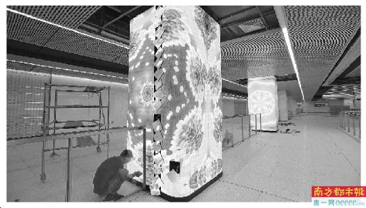 7月7日,深圳地铁10号线正在进行试运行。华为站内设计有6条LED立柱。南都记者 赵炎雄 摄
