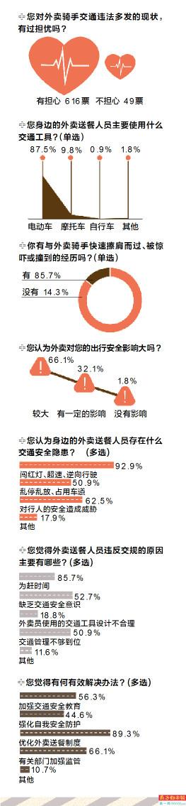 长期以来,外卖送餐服务在给人们生活带来便利的同时,也给交通出行带来了许多问题。近日,南都“热点站站队”发起了关于外卖送餐员交通违法频发的话题。根据数据显示,665人参与了投票,其中616票表示对外卖送餐员交通违法问题感到担忧,占比达到92%。
