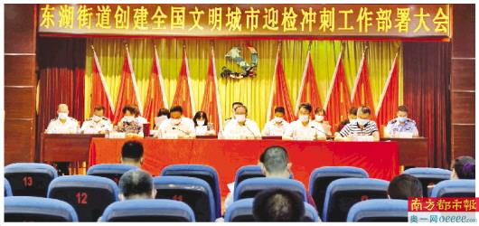 “今年是创建全国文明城市收官之年、决战决胜之年,要扎实做好创文工作,全力以赴打赢‘决胜战’。”东湖街道党工委书记程时菊表示,一方面,各单位要牢固树立“一盘棋”的思想,把创文工作作为一项义不容辞的政治责任,增强责任感和使命感,主要负责人要充分发挥模范带头作用,落实好各项工作;另一方面,辖区各单位要严格按照实地考察点位和测评标准,突出问题导向,明确包干责任、全面查缺补漏、奋力攻坚克难,确保在较短时间内取得明显的整改成效。