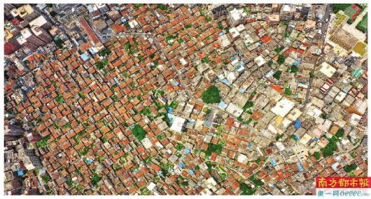 鳞次栉比的楼村旧村,外围是一栋栋高楼。