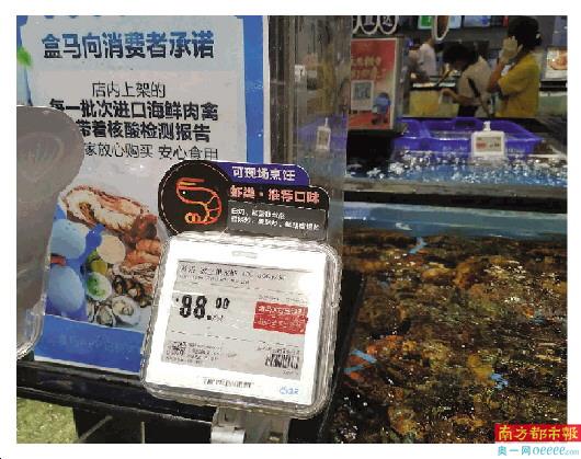 在商品上,货物到店之前,会使用消毒液对外包装消毒,并做好货品的全链路溯源工作。在水产区,市民不难发现,每一缸生鲜的价格牌上,都贴有一个条形码,用盒马APP扫码,即可查看食品的捕捞地点、核酸检测结果报告、运输车辆等具体信息。“除了可视化溯源体系,我们还会用飞行检查的方式,到供应商加工现场查验货品,从源头保证产品品质。”林佳福补充道,所有上架的进口生鲜均做了核酸检测,确认检测结果为阴性才摆上货架。