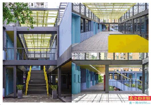 不仅如此,高科技预制学校采用新型轻钢结构系统,具有优异的抗震、抗风性能。建筑材料可循环利用,减少能源消耗。“相比同规模的传统砖混结构学校项目,施工节水80%、节能50%,建筑垃圾减少90%。”工作人员表示,学校还采用高度一体化、模块化联合设计,被动式绿色建筑设计措施,使教室获得良好自然通风、通过空间优化设置大量架空活动区域适应岭南气候,打造出舒适的教学环境。并采取了切实有效设计措施解决钢结构热工性能差的问题,有效降低了室内外冷热交换,并有效隔绝噪音传递。