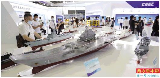 2020中国海洋经济博览会开幕,展示的军舰模型。