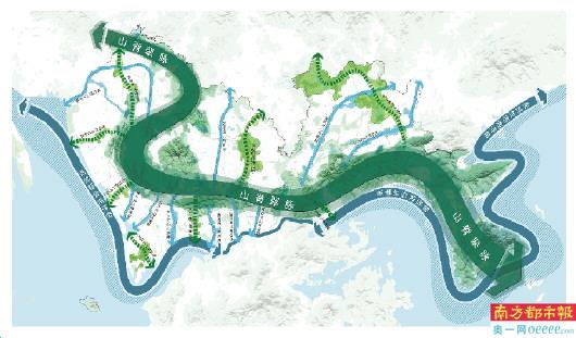 据悉,“一脊一带十八廊”魅力生态骨架,包含1条山脊翠脉、1条滨海蓝带、8条山廊、10条水廊,与百条城径、千座公园,共同营造和美宜居的深圳家园。“一脊”是横贯深圳中部、连绵百公里的绿色山脉,通过必要的生态廊桥,串联自然保护地、森林公园、郊野公园、湖泊水库等自然要素,成为容纳近万种野生动植物栖居的生态家园。“一带”是滨海蓝带,这是由深圳河连接,从东到西串联大亚湾、大鹏湾、深圳湾和前海湾以及珠江口,形成汇聚海湾、半岛、湿地、沙滩的东西滨海蓝带,打造丰富多彩和极具活力的滨海生活带。十八廊是由八条“山廊”以及十条“水廊”构成,通过八条“山廊”连通主脉之外的众多独立小山体,构建连通山脊与海岸带的生态廊道;十条“水廊”依托山海间的自然河流,提供深入城市中心、串联精彩文化活力体验的廊道。初步建成的就是大沙河水廊,已经以一种创新活力水岸的滨水公共生活受到了市民们的喜爱。