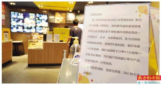 福田区一家麦当劳,门前竖立了不再免费提供一次性餐具的告示。