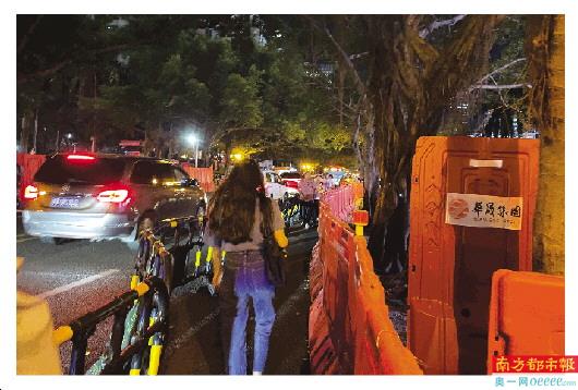 首先,公共交通方面,从车公庙地铁站C出口步行至十亩地大约600米,要6-8分钟,路途不算遥远,但沿途有明显的安全隐患:车流量较大,道路两旁因施工立有围栏,真正留给行人的空间不多,宽度只能通过一个人,容易出现“人挤人”的情况。