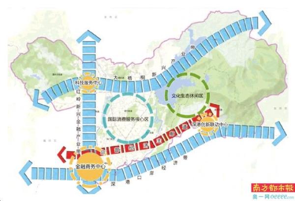 第四个是深港口岸经济带,面积约710万平方米,规划范围南到深圳河,北至深南东路、罗沙路、莲塘路,西抵红岭南路,东至莲塘口岸片区。聚焦深港民生规则衔接,建设深港社会协同发展试验区。