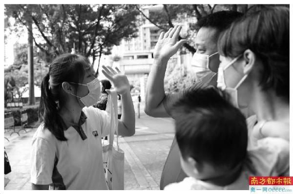 去年7月20日,深圳实验学校初中部考场门前,一家人来为参加中考的孩子加油。 南都记者 赵炎雄 摄(资料图)