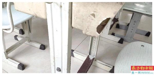 课桌椅生锈有些铁片破损 对学生存潜在安全隐患