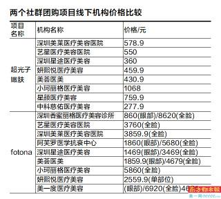 说到价格,课题组也进行了一番比较。超光子嫩肤市场价一般在1500元左右/次,而fotona根据部位不同价格也不同,市场价一般在3000到10000元不等,不过大多数机构会在美团上推出优惠的新客体验价,那么团美美给出的团购价格真的实惠吗?课题组随机筛选了几家机构进行对比。