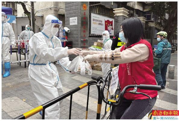 “风风火火”骑车而来的,是翠锦社区工会的积极分子卢媛,疫情发生以来一直在做志愿者。最近几天,她多了个身份——“送药员”。“因为管控区居民只进不出,购药的需求很多且着急。考虑到这种情况,我们就建了微信群,把药店也拉进群,居民在群里点单,药店接单,我来送单。每天大概四五次,十几单的样子。”卢媛说。