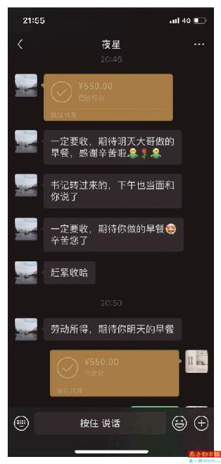“辛苦钱,这个是应该的,那么早起床,早出晚归的,我们也要吃早饭的。一定要收,期待你做的早餐,辛苦您了。”这是曙光社区工作站工作人员给赖先生发来的信息。