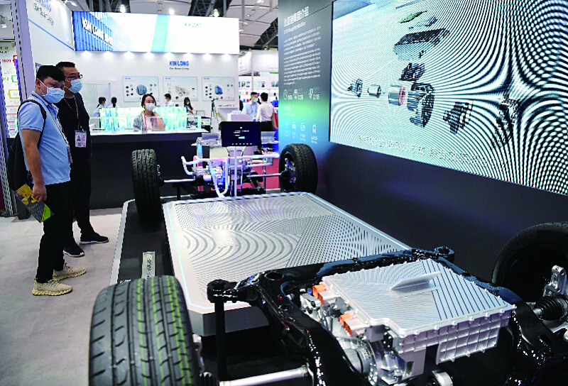 2021年10月15日在第130届广交会上拍摄的比亚迪展台。新华社图