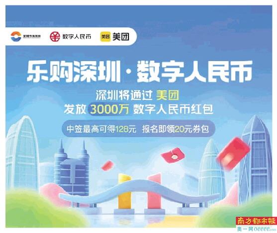 深圳将发放3000万元数字人民币 最高可领128元无门槛红包