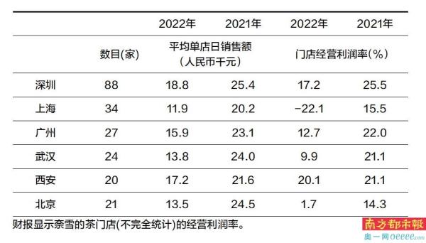 深圳与上海,则是奈雪门店密集度榜一与榜二城市。在奈雪的大本营深圳,奈雪的茶门店经营利润率从去年同期的25.5%下降至17.2%,单店日销售额则从2.54万元降到了1.88万元。而上海,因为疫情原因,奈雪上半年上海门店经营利润率更是直接告负,降至-22.1%。线下生意不好做了。截至2022年6月30日,平均单店日销售额比2021年上半年下降4000元-1.1万元不等。