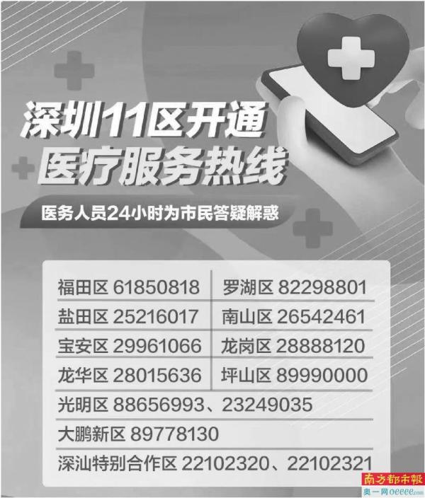 深圳11区开通24小时医疗服务咨询热线。