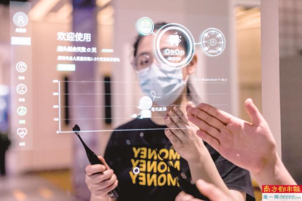 2022中国国际大数据产业博览会上,工作人员在使用智能镜子。新华社图片