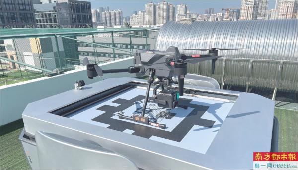 而在福田区福保街道办事处和创意保税园楼顶,两架无人机也时刻准备着,随时开启自动巡河行动。根据巡检计划设定时间,机舱缓缓打开,自我体检完毕后,两架无人机上升数十米,同步腾空而起,一架朝着新洲河、一架朝着深圳河同步启航。现场显示屏上,实时更新航线和数据:航线长度新洲河长1.96千米,预计执行时间20分钟,巡航点位6个……
