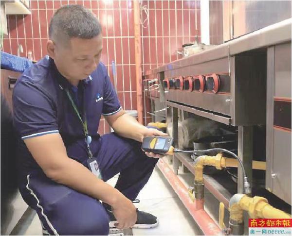 深圳市燃气集团罗湖(盐田)分公司客服员卢佑发对餐饮用户进行安检。