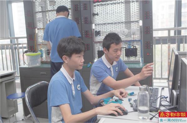 深圳一职的学生在课堂上练习。