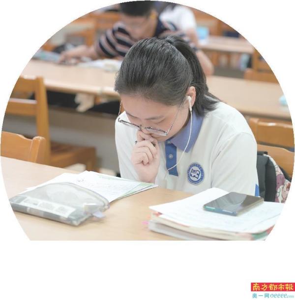 近日,育才中学的学生在图书馆自习。