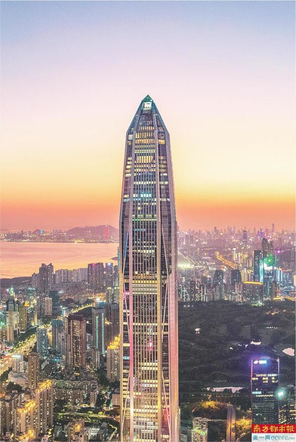 晚霞下的深圳平安国际金融中心。 南都拍客 黄东 摄