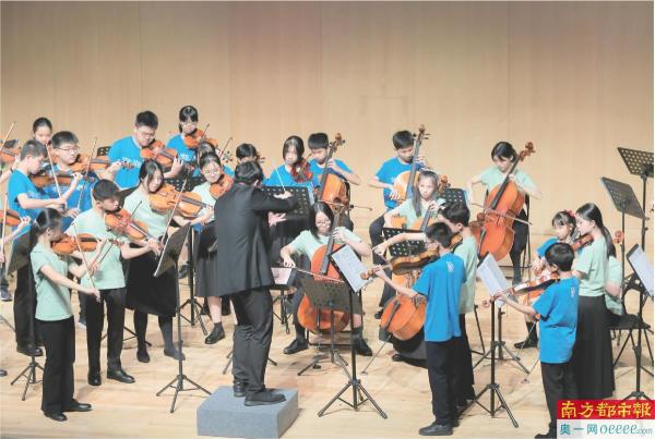 负责带领排练的亚洲青年弦乐团指挥区骏熙表示,小乐手们看指挥的意识一天比一天强,音准有明显提升,反应更加灵敏。“另外还有个很有意思的现象。”区骏熙说,“我发现深圳小朋友的粤语变好了,而香港小朋友的普通话也变好了。因为我们是用英语来排练的,所以两边的孩子英语也进步了。”在这个项目中,小乐手们的交集并不局限于音乐上的切磋,还是一次认识新朋友、锻炼交流能力的好时机。从互不相识到舞台上的搭档,这段经历将会成为他们人生中珍贵的回忆。