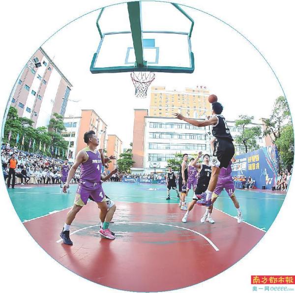 大浪街道2023年篮球赛决赛冠亚军争夺赛现场。