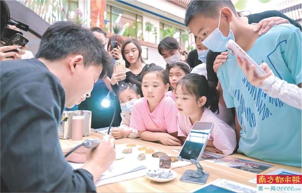 今年3月松岗琥珀文化购物节,手艺人将琥珀原石精雕细琢,现场的观众直呼“大开眼界”。通讯员 曾惠清 供图