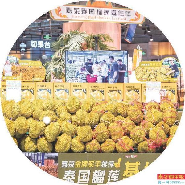 “五一”期间,嘉荣超市的泰国金枕榴莲将推出惊喜价。