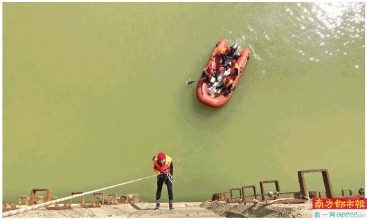 4月30日,惠东县应急管理局联合消防救援大队在白盆珠水库进行翻船自救演练。