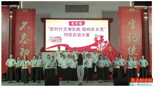 去年“七一”前夕,长宁镇举办村歌合唱大赛,该镇12个村(居)纷纷组队“亮嗓”,上台竞技。“村民热情高涨,积极参赛,没机会加入合唱团的自发组织拉拉队,为选手加油鼓气。”长宁镇新村村党总支部书记许小强回想起去年的村歌大赛,依然很激动。他说,村歌是凝聚民心的纽带,自从有了村歌,村民的心更齐了,精气神也更足了。