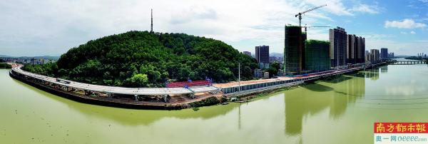 江南路东北段总体工程进度已完成约71.6%,其中桥梁工程基础及下部构造已全部完成,全桥154片预制梁已架设完成。道路工程已完成约10万方路基土方填筑及防洪堤挡土墙、人行道景观平台建设。排水工程已完成雨水管道1000米,污水管道500米。下一步将按施工计划工程节点的时间加紧推进,计划于11月底完成路基土石方施工、护栏、人行道铺贴、路灯安装及排水工程,12月下旬完成桥面铺装及附属工程,12月底完成护栏安装、人行道铺贴、路面碎石垫层及水稳层。
