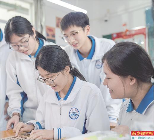 在惠州综合高中的课堂上,经常可以看到老师与学生、学生与学生之间的互动、探讨;在课后,则是老师和学生“一对一”培优辅弱;同时,该校对标强基计划,与清北等高校合作,通过“双师”共同辅导,依托高校力量,为拔尖学子提供研究性学习资源,提前开启科研之路,实现与名校的有效对接。