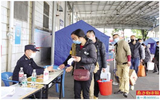3月3日,汽车总站,返程的旅客下车后要登记。
