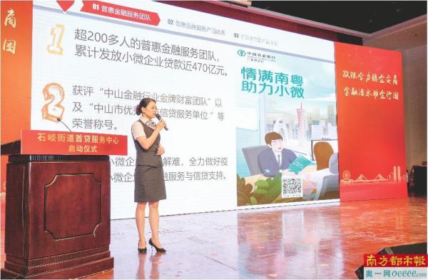 中山农行客户经理在“石岐街道首贷服务中心”启动仪式作宣讲。
