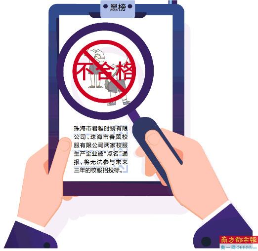 今年年初,省市场监督管理局发布中小学生校服产品质量监督抽查情况的通报,珠海两家企业多款校服“榜上有名”。今年1月,南都曝光了珠海两家校服企业,五年中四次上榜校服不合格名单,引发社会关注。日前,珠海市教育局正式发出通知,要求各区、各学校在校服招标过程中,对近三年内出现任何监督抽查不合格的企业不作为招标对象。