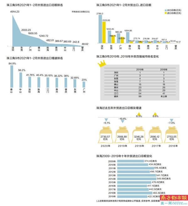 建设现代化国际化经济特区内容丰富,涵盖了生态、交通、产业、立法、科技、文化、医疗等方方面面,如何解读?珠三角9市陆续发布的今年前2个月外贸数据,为人们从外贸及构建国内国际双循环的视角,观察珠海建设现代化国际化经济特区、粤港澳大湾区高质量发展引擎打开了一个小切口。