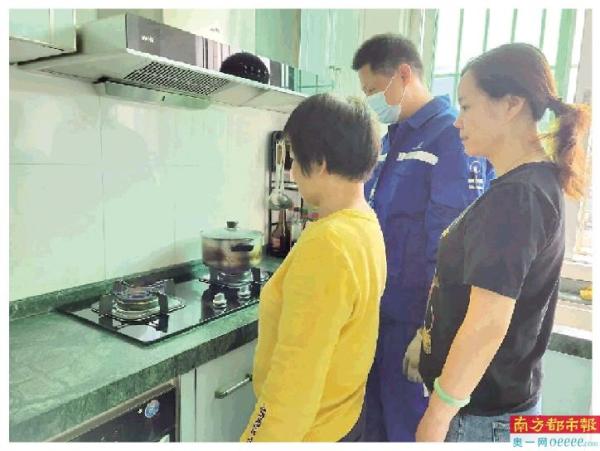 南头街道常兴新村居民家中的管道燃气顺利点火。