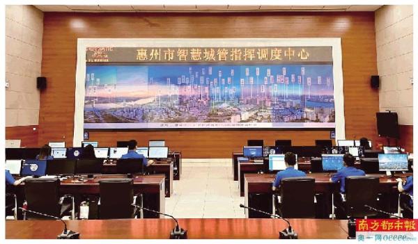 惠州市智慧城管指挥调度中心大厅。