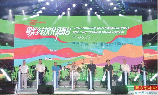 当晚,第二届广东原创乡村民谣大赛决赛在三乡镇雍陌村艺术广场鸣锣开赛,“粤美乡村-文化新舞台”2023中山市乡村文化活动年系列活动也同步开启,“文艺进乡村”“文化和自然遗产日”“乡村文化集市”等九大重点活动将从6月份持续至12月份,将优秀文化产品与服务送进乡村,送到百姓心中。